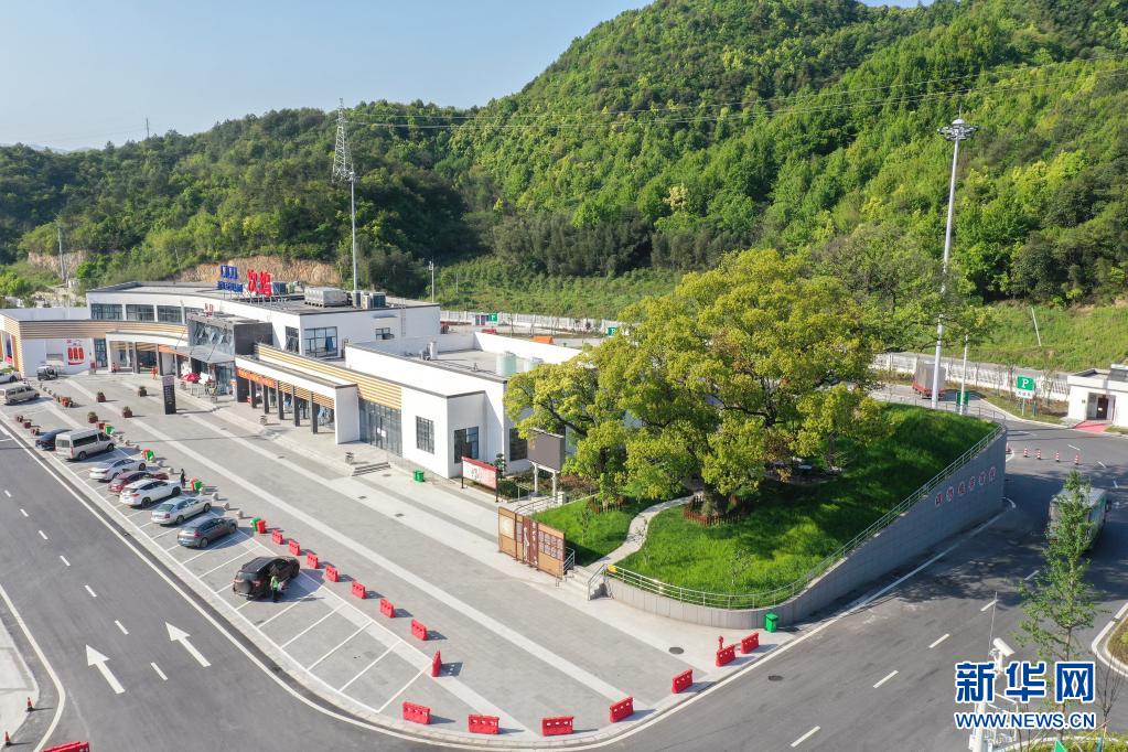 4月19日拍攝的杭州第二繞城高速西復(fù)線次塢服務(wù)區(qū)的古樹(無人機照片)。