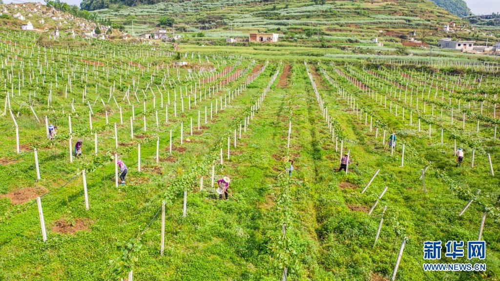 4月20日,貴州省六盤水市六枝特區(qū)木崗鎮(zhèn)農(nóng)民在田地里勞作(無(wú)人機(jī)照片)。