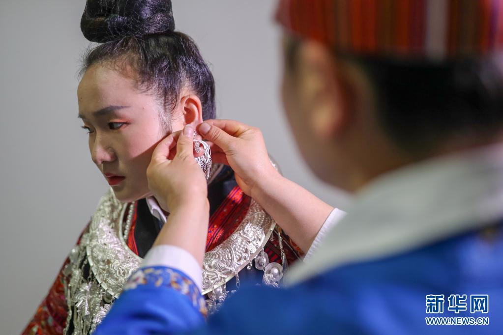 今年姊妹節(jié)前夕,母親張?jiān)雅畠菏⒀b的銀飾拿到銀飾店里進(jìn)行清洗,希望女兒能在盛裝巡演上展示最美的一面。4月25日姊妹節(jié)當(dāng)天,張佳麗早早起床,在母親和同學(xué)的幫助下,開始化妝、穿衣、佩戴銀飾,一直忙到9點(diǎn)才準(zhǔn)備完畢。身著盛裝站在巡演隊(duì)伍中,張佳麗說:“這是我們苗族同胞最大的節(jié)日,無論身處何地,我都會(huì)如約回家參加活動(dòng)!”