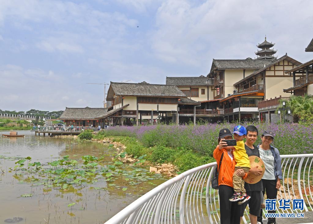 “五一”假期,人們走進廣西南寧市相思小鎮,感受民風民韻,盡享假期生活。新華社記者 周華 攝