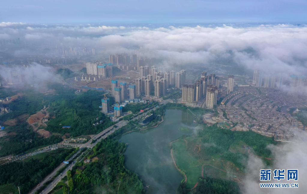 5月8日,貴陽(yáng)市觀山湖區(qū)的高樓被霧氣籠罩(無(wú)人機(jī)照片)。