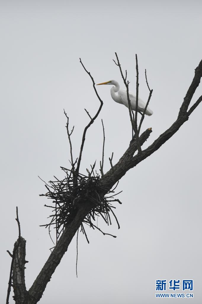 隨著天氣轉(zhuǎn)暖,大批鷺鳥飛到湖南益陽沅江市的南洞庭湖區(qū)筑巢、棲息、繁殖。
