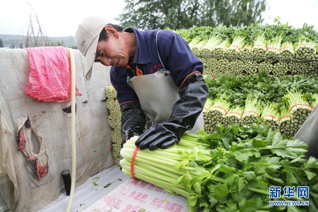 7月27日,甘肅省定西市安定區(qū)鳳翔鎮(zhèn)中川村村民將芹菜裝車。新華社發(fā)(王克賢 攝)