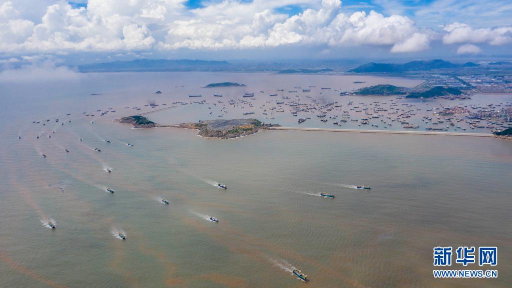當(dāng)日中午12時(shí),浙江沿海地區(qū)的部分漁船結(jié)束伏季休漁,駛出漁港,奔赴漁場(chǎng)。