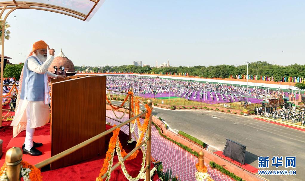 8月15日,印度總理納倫德拉·莫迪在德里舉行的獨立日慶祝儀式上講話。