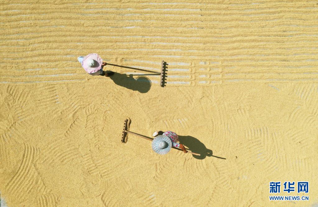 8月18日,赤水市復(fù)興鎮(zhèn)太和村的村民在晾曬稻谷(無人機照片)。