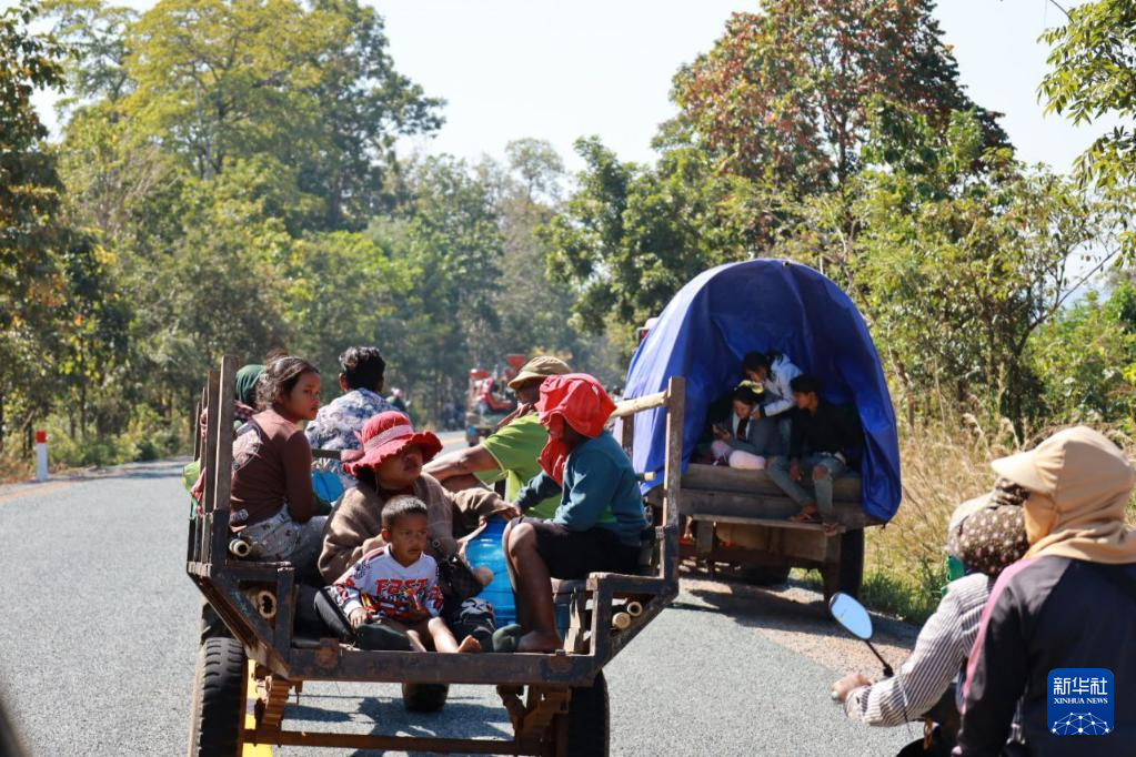 这是12月8日在柬埔寨柏威夏省边境地区拍摄的撤离的居民。
