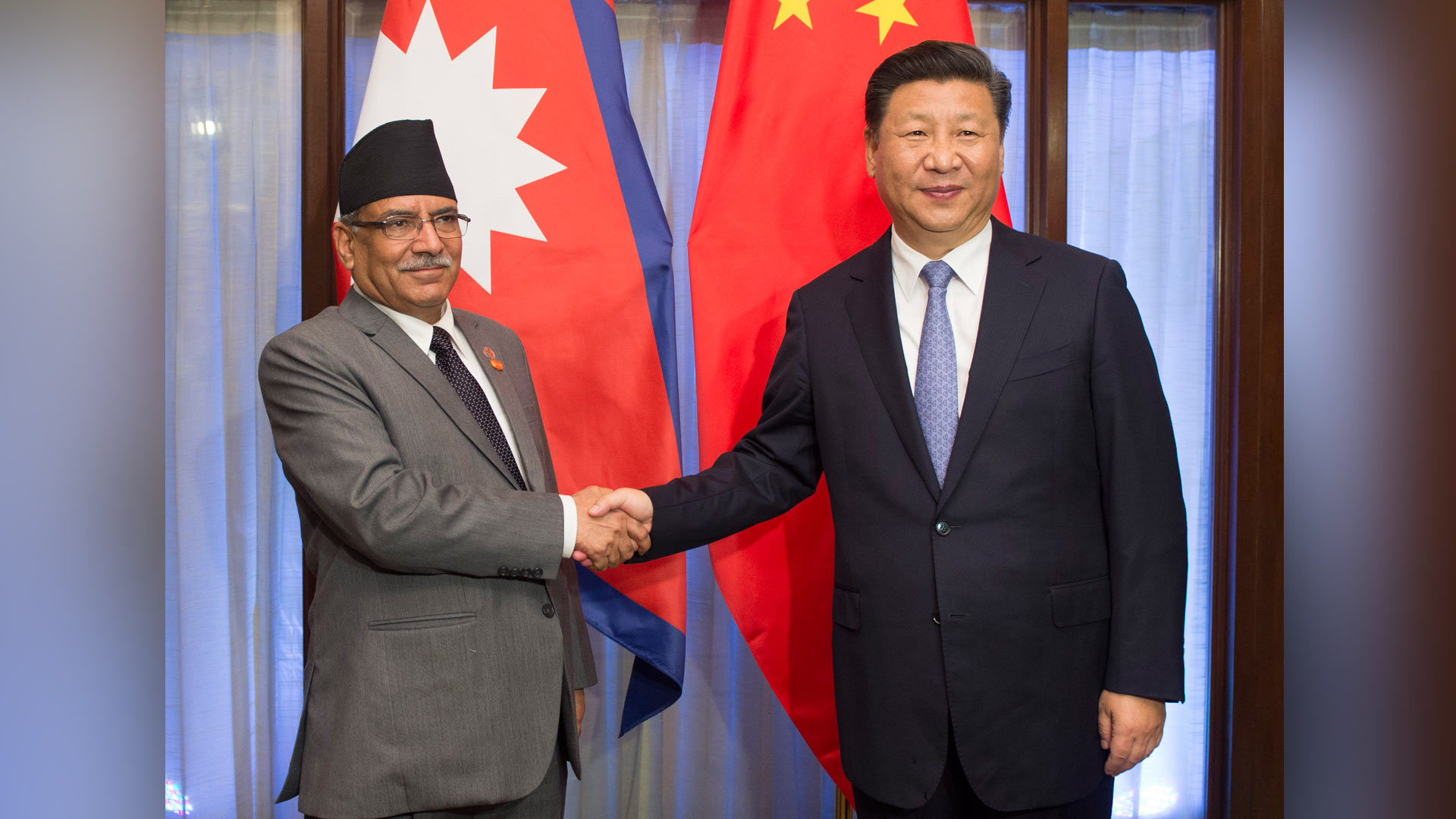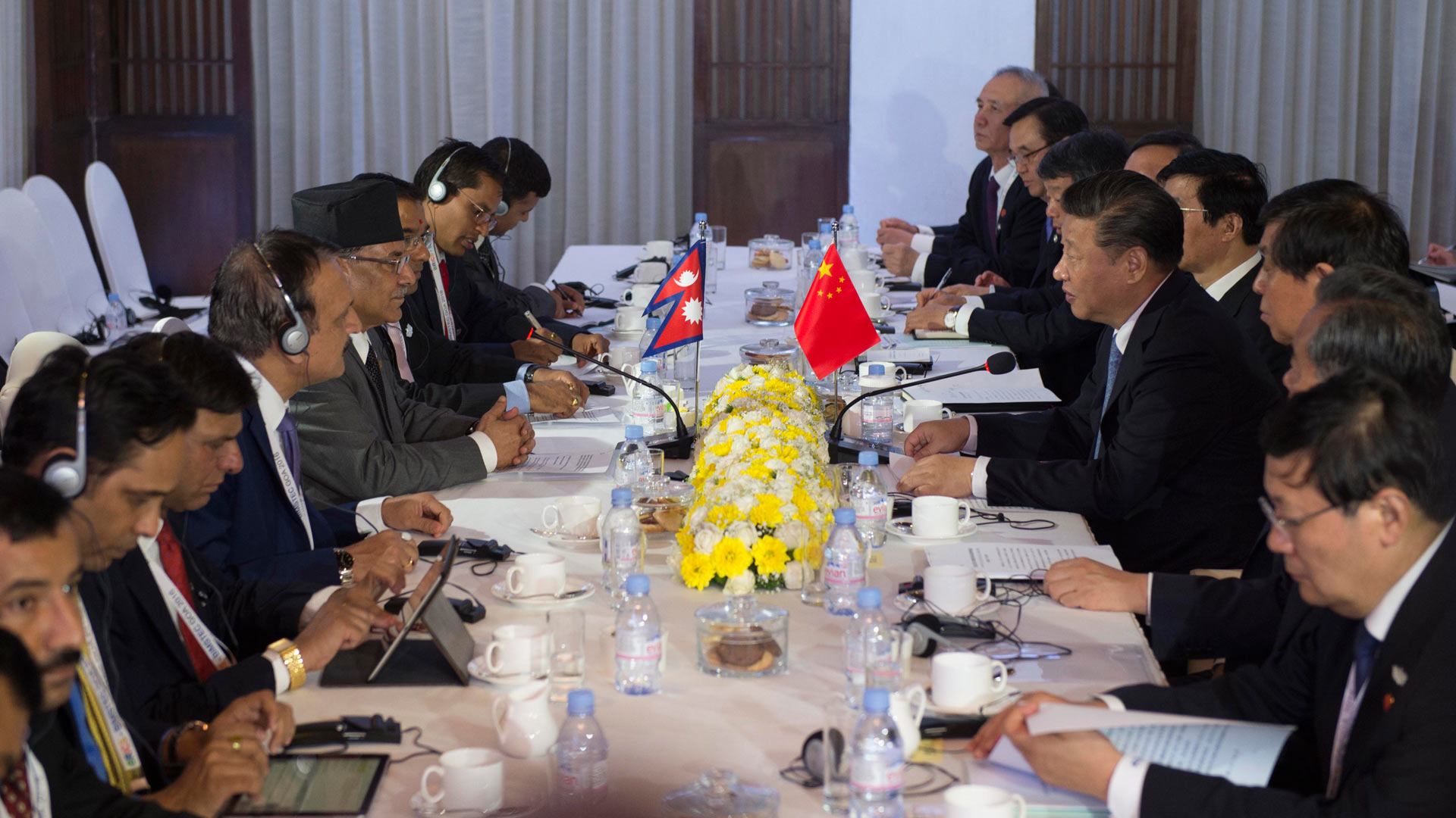 10月15日,國家主席習(xí)近平在印度果阿會見尼泊爾總理普拉昌達(dá)。新華社記者 謝環(huán)馳 攝