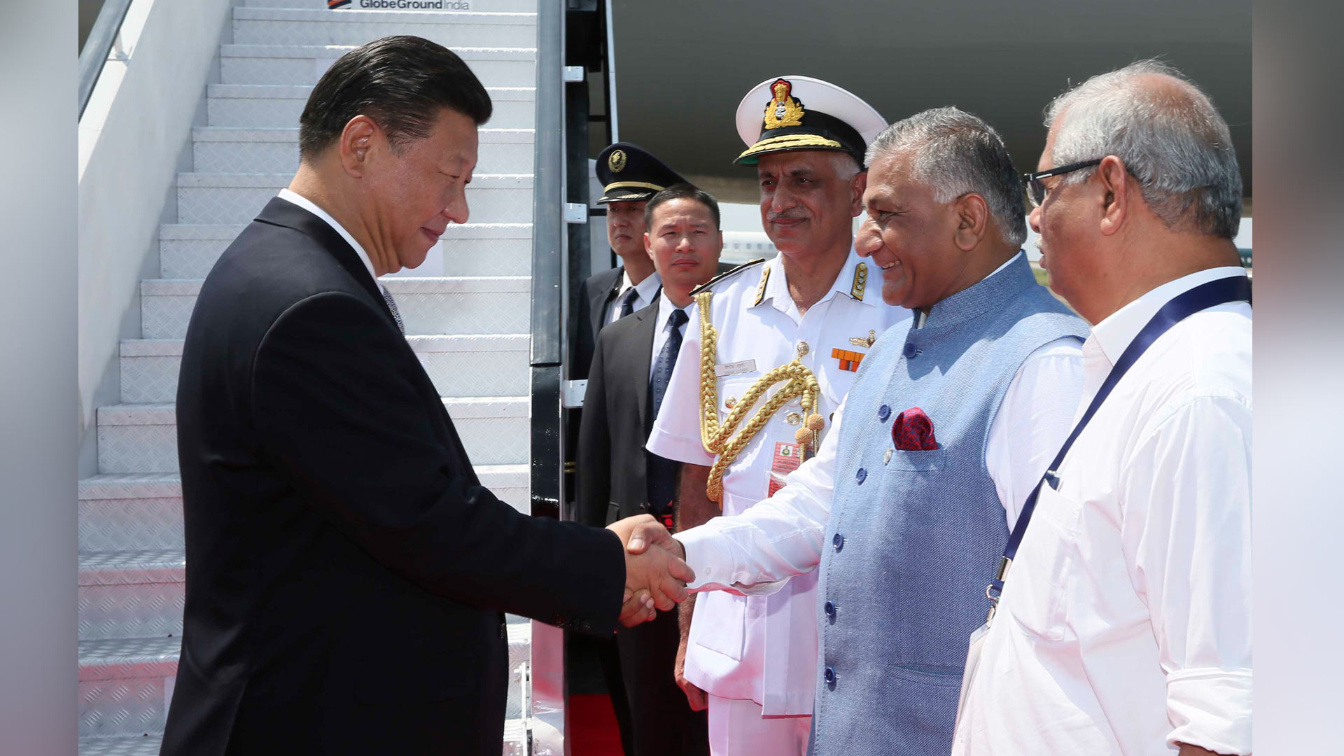 10月15日,國家主席習(xí)近平抵達(dá)印度果阿,應(yīng)印度總理莫迪邀請,出席金磚國家領(lǐng)導(dǎo)人第八次會晤。新華社記者 謝環(huán)馳 攝