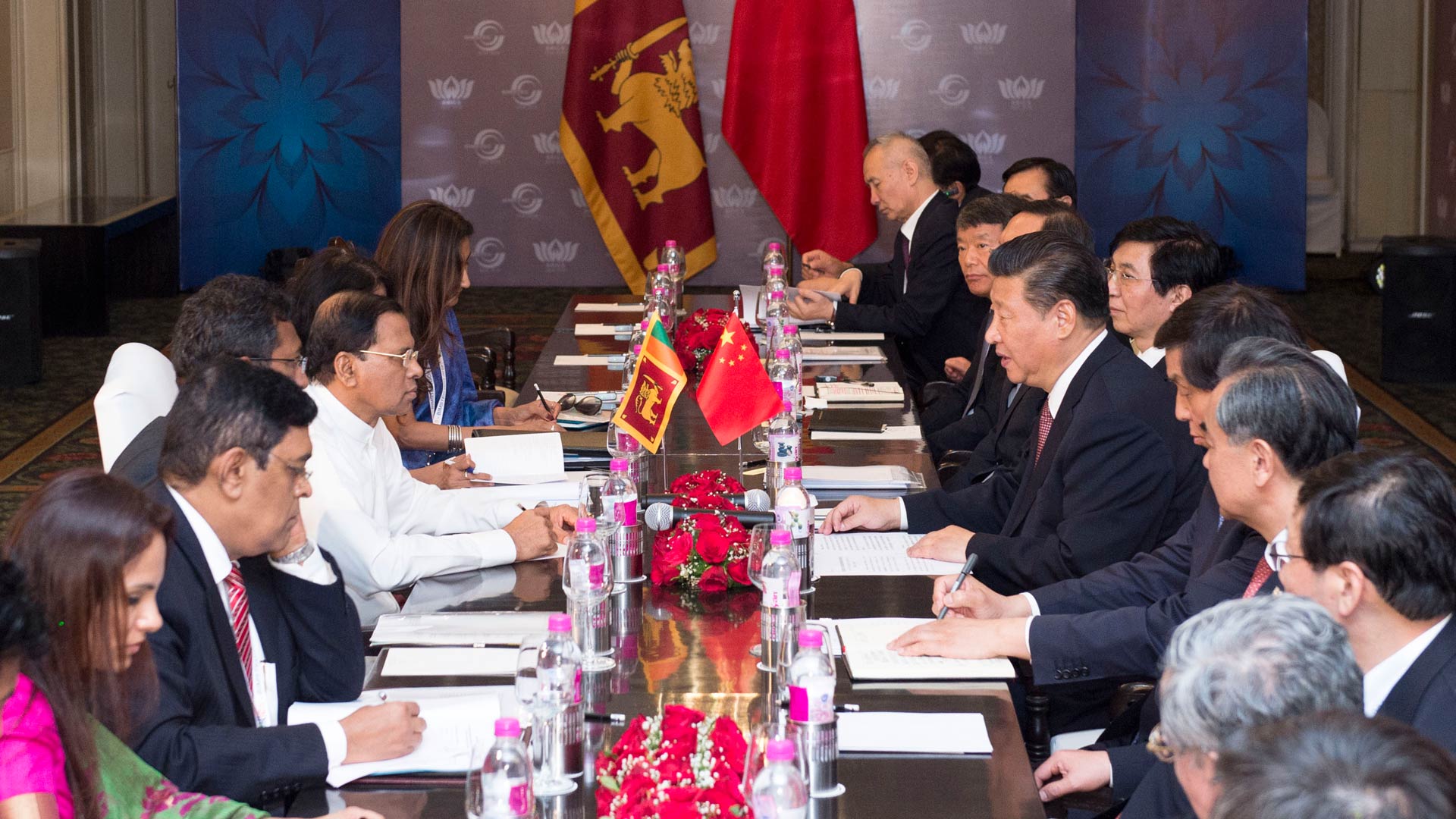 10月16日,國家主席習(xí)近平在印度果阿會見斯里蘭卡總統(tǒng)西里塞納。 新華社記者 王曄 攝