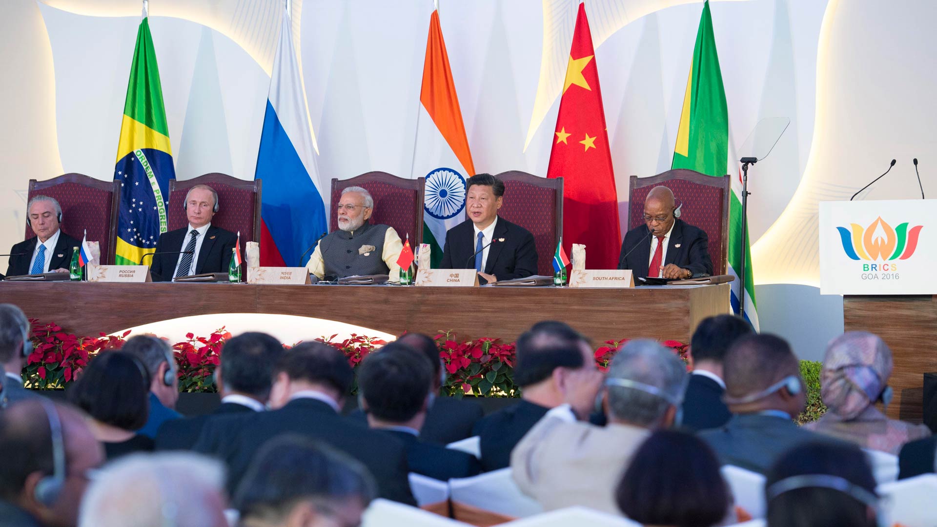 10月16日,金磚國家領(lǐng)導(dǎo)人第八次會晤在印度果阿舉行。中國國家主席習(xí)近平、印度總理莫迪、南非總統(tǒng)祖馬、巴西總統(tǒng)特梅爾、俄羅斯總統(tǒng)普京出席。習(xí)近平發(fā)表題為《堅定信心 共謀發(fā)展》的重要講話。新華社記者 姚大偉 攝
