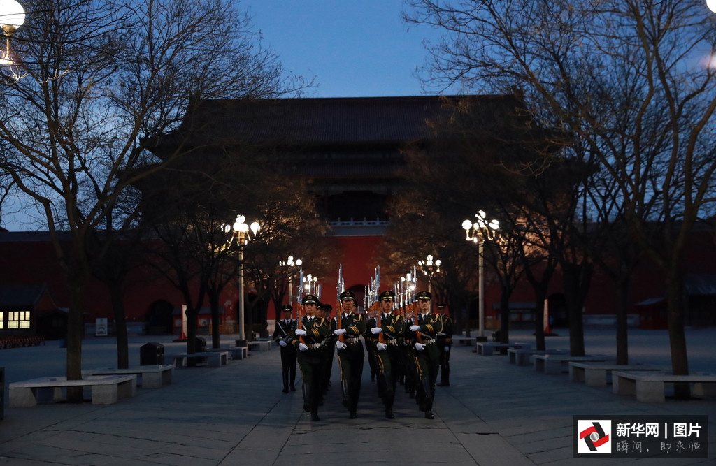 2017年3月5日,第十二屆全國人民代表大會第五次會議在人民大會堂開幕。凌晨4點的長安街,夜色還未褪去,位于故宮午門前一側的一座武警營區內,卻已是燈火通明。一群武警戰士穿起禮兵服、握緊鋼槍開始訓練。晨曦微露,從金水橋到國旗桿下,138步、2分07秒、365天,無論雨雪風霜、嚴寒酷暑,他們都守護著五星紅旗冉冉升起。這支部隊就是武警北京總隊天安門支隊國旗護衛隊。