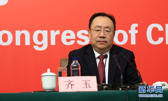 ??? 10月19日,十九大新聞中心舉行記者會(huì),邀請中紀(jì)委、中組部負(fù)責(zé)人介紹黨的建設(shè)和全面從嚴(yán)治黨相關(guān)情況。圖為中共中央組織部副部長齊玉介紹相關(guān)情況。新華網(wǎng) 郝廣鵬攝