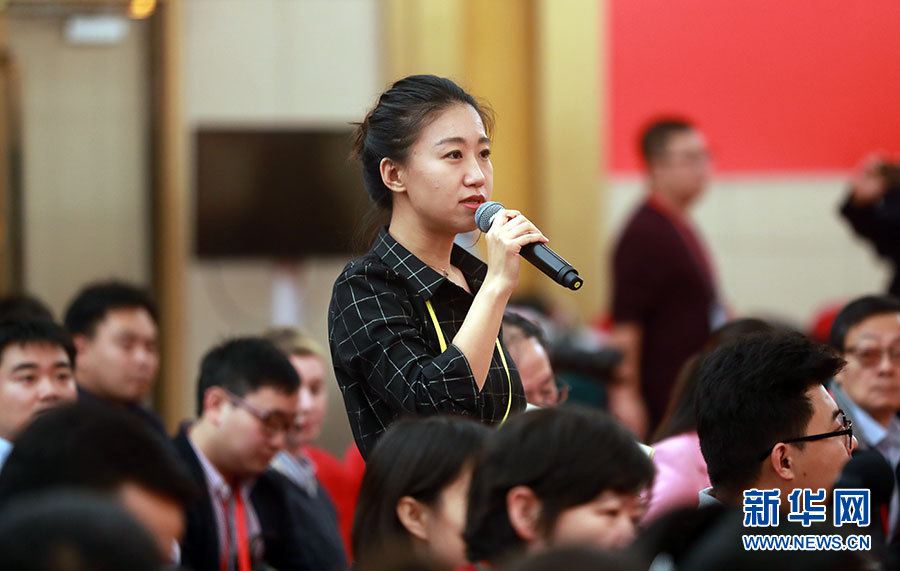 ??? 10月19日,十九大新聞中心舉辦集體采訪,邀請工信和通訊領域代表談走新型工業化道路。圖為香港大公文匯傳媒集團記者提問。新華網 郝廣鵬攝