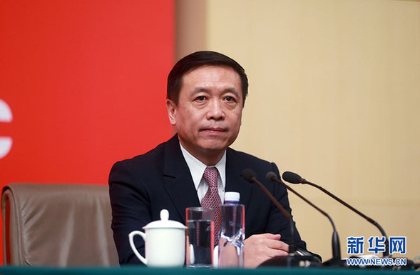 10月20日,十九大新聞中心舉行記者會,邀請中宣部、中央文明辦、文化部、新聞出版廣電總局相關負責人介紹加強思想道德和文化建設情況,并回答記者提問。圖為新聞出版廣電總局副局長張宏森向記者介紹情況。新華網 郝廣鵬 攝