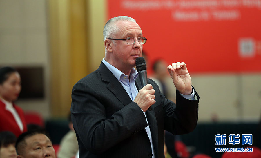10月20日,十九大新聞中心舉辦集體采訪活動,主題為“實施創新驅動發展戰略”。圖為中國國際電視臺記者提問。新華網 郝廣鵬攝