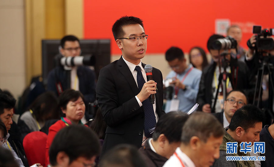 10月21日,十九大新聞中心舉辦記者招待會,邀請中共中央統(tǒng)戰(zhàn)部常務副部長張裔炯、副部長冉萬祥,中共中央對外聯絡部副部長郭業(yè)洲介紹黨的統(tǒng)一戰(zhàn)線工作和黨的對外交往情況,并回答記者提問。圖為中央電視臺、中國國際電視臺記者提問。新華網 郝廣鵬攝