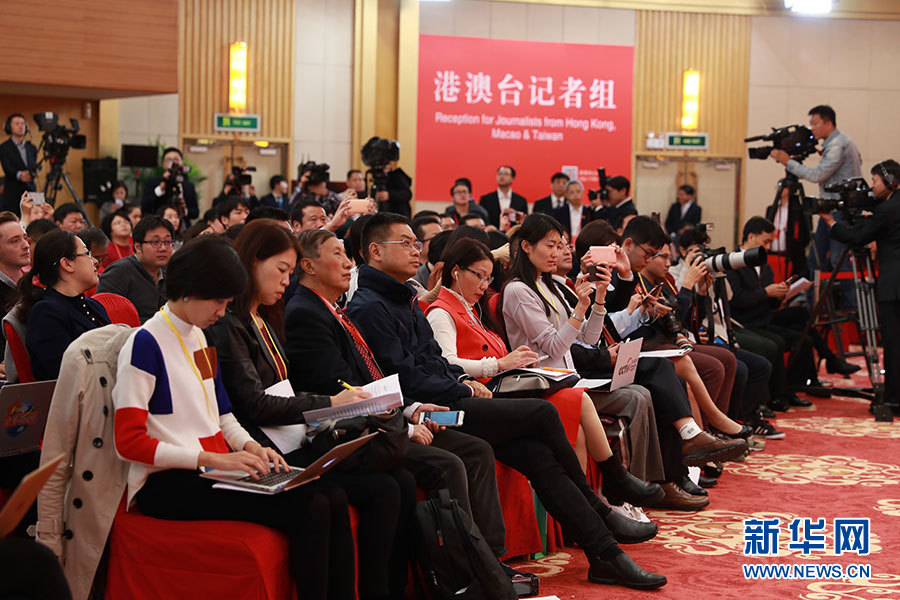 10月22日,十九大新聞中心在梅地亞中心二層新聞發布廳舉辦集體采訪活動,主題為“中國特色強軍之路邁出堅定步伐”。圖為現場記者。新華網 郝廣鵬攝