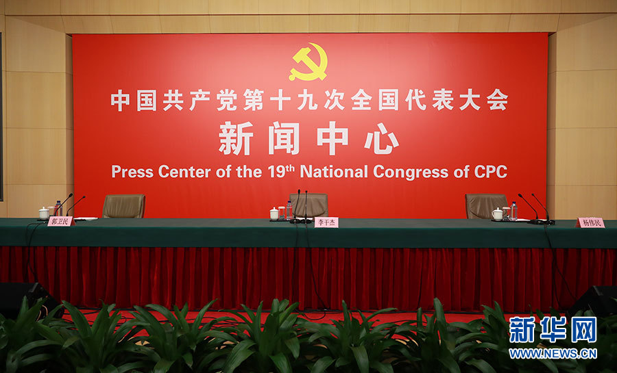 10月23日,十九大新聞中心舉辦記者招待會(huì),邀請(qǐng)中央財(cái)經(jīng)領(lǐng)導(dǎo)小組辦公室副主任楊偉民,環(huán)境保護(hù)部黨組書(shū)記、部長(zhǎng)李干杰介紹踐行綠色發(fā)展理念,建設(shè)美麗中國(guó)有關(guān)情況,并回答記者提問(wèn)。圖為記者招待會(huì)現(xiàn)場(chǎng)。新華網(wǎng) 郝廣鵬攝