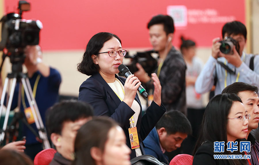10月23日,十九大新聞中心舉辦集體采訪活動(dòng),主題為“打好生態(tài)環(huán)保攻堅(jiān)戰(zhàn)”。圖為今日中國(guó)雜志社記者提問。新華網(wǎng) 郝廣鵬攝