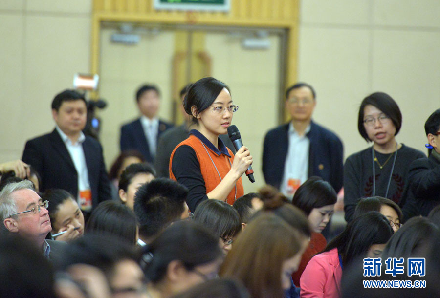 ????十二屆全國人大三次會議新聞中心于3月12日在梅地亞中心多功能廳舉行記者會,邀請中國人民銀行行長周小川,中國人民銀行副行長、國家外匯管理局局長易綱,中國人民銀行副行長潘功勝,絲路基金有限責任公司董事長金琦就金融改革與發展回答中外記者提問。圖為新華社和新華網記者提問。新華網/中國政府網 郭小天攝