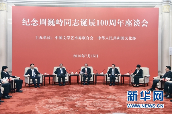 新華社北京7月15日電 紀(jì)念周巍峙同志誕辰100周年座談會(huì)7月15日在京舉行。中共中央政治局委員、中央書記處書記、中宣部部長(zhǎng)劉奇葆出席座談會(huì)并講話。中國(guó)文聯(lián)主席孫家正出席。