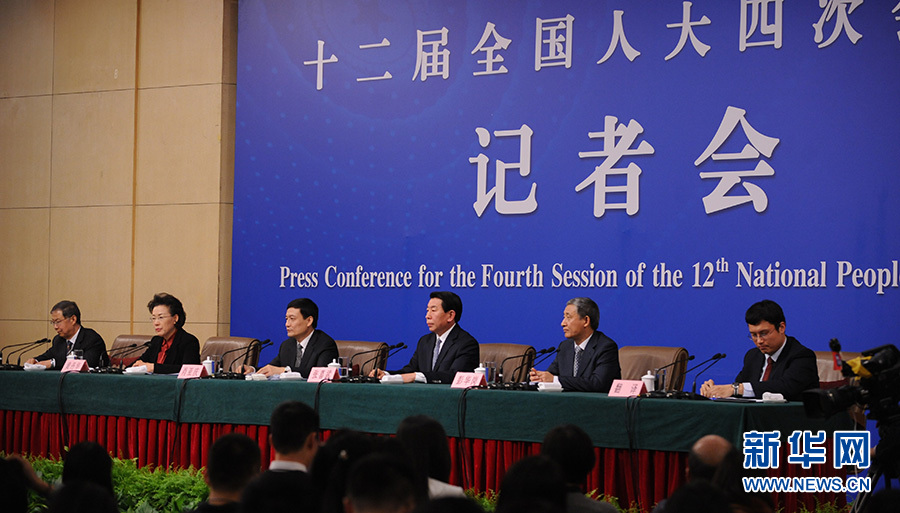 ?????十二屆全國人大四次會議新聞中心于3月12日(星期六)14時30分在梅地亞中心多功能廳舉行記者會,邀請國務院國有資產監督管理委員會主任肖亞慶、副主任張喜武、副主任黃丹華和副秘書長、新聞發言人彭華崗就“國企改革”的相關問題回答中外記者的提問。圖為肖亞慶回答記者提問。新華網/中國政府網 陳杰 攝