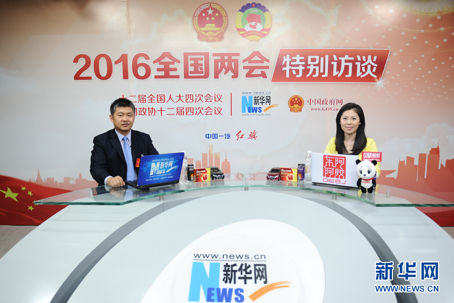 董事長兼總經理王召明做客新華網兩會訪談。圖為王召明在訪談現場。新華網 賈海元 攝