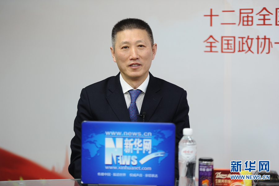 ??? 2016年3月13日,全國人大代表,煙臺張裕葡萄釀酒股份有限公司總經理周洪江做客新華網兩會訪談。圖為周洪江在訪談現場。新華網 盧志佳 攝