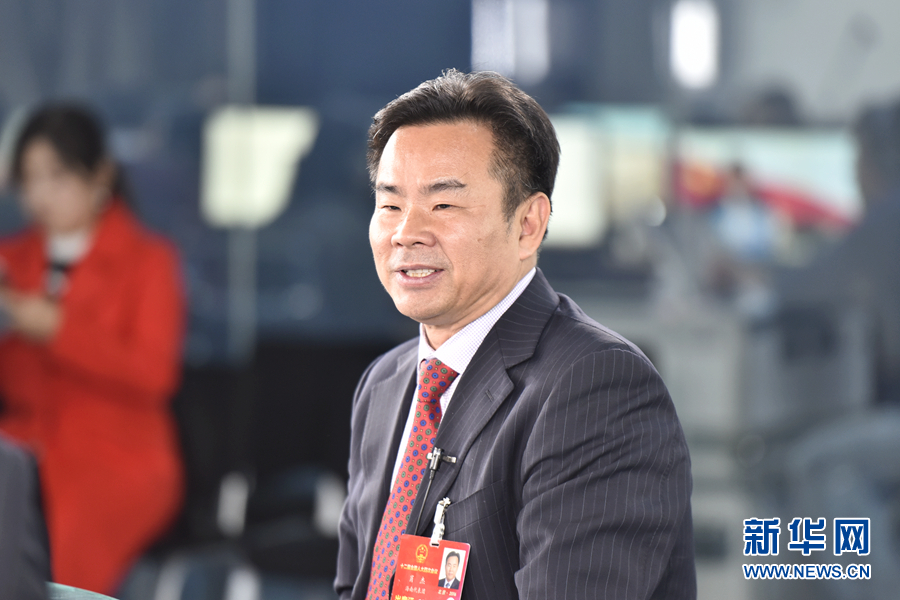 2016年3月13日,全國人大代表、海南省三沙市委書記、市政府市長肖杰做客新華網兩會訪談直播間。圖為肖杰。新華網 郭小天 攝