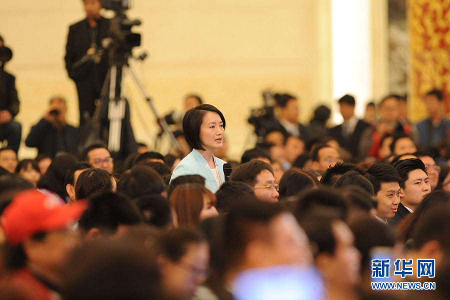 3月16日上午,國務院總理李克強在人民大會堂三樓金色大廳會見采訪十二屆全國人大四次會議的中外記者并回答記者提出的問題。圖為鳳凰衛視記者提問。新華網/中國政府網 陳杰攝