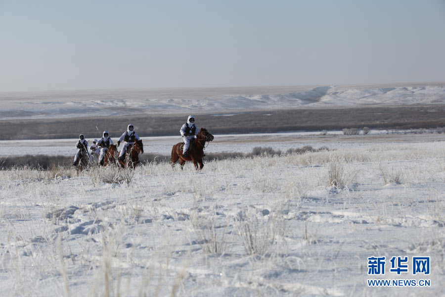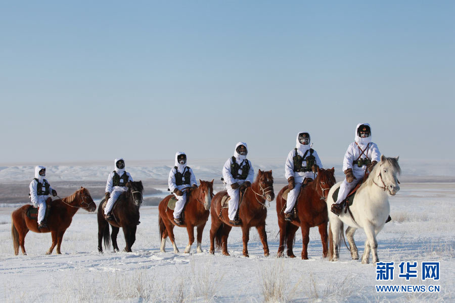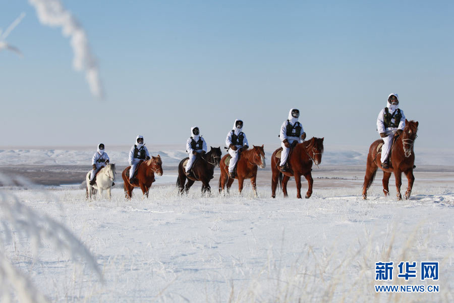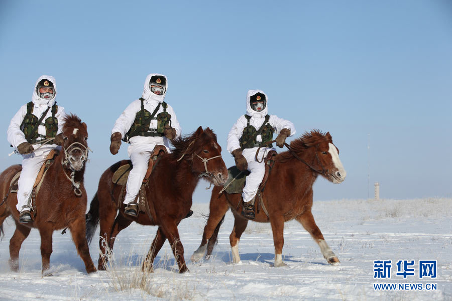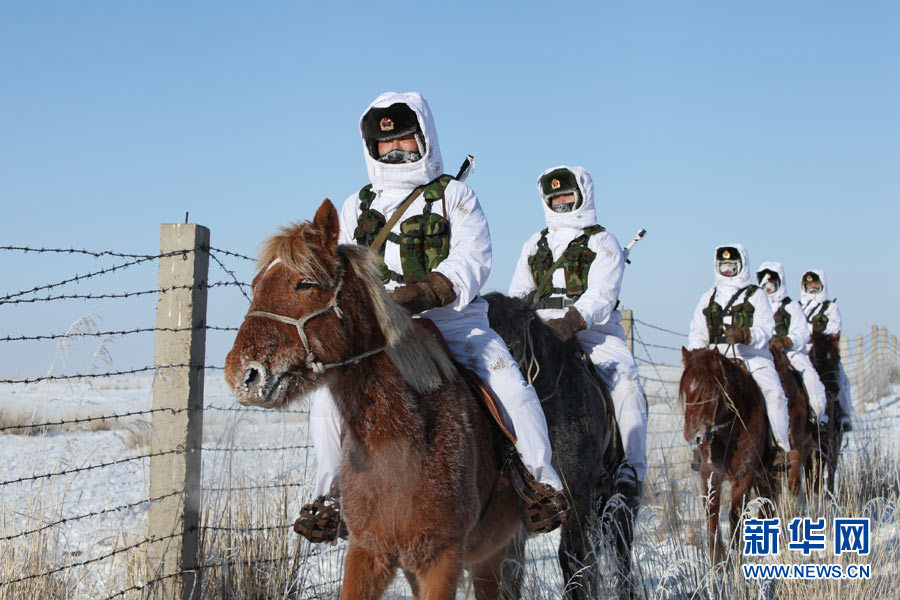 戍邊官兵冬季在邊防線(xiàn)上巡邏執(zhí)勤。陳在林 攝