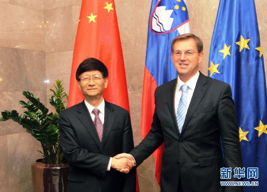 9月15日,在斯洛文尼亞盧布爾雅那,斯洛文尼亞總理采拉爾(右)會(huì)見(jiàn)到訪的習(xí)近平主席特使、中共中央政治局委員、中央政法委書(shū)記孟建柱。新華社記者汪亞雄攝