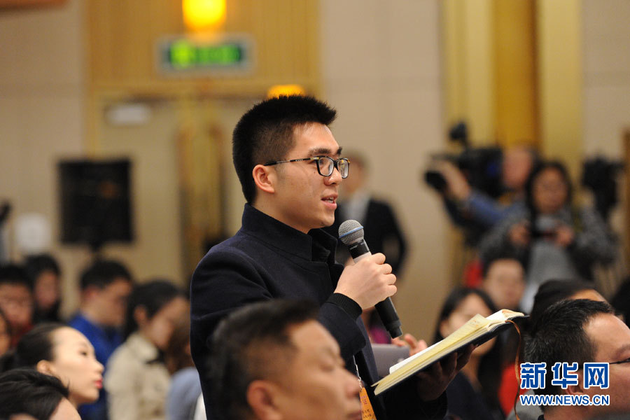3月10日,十二屆全國人大五次會議新聞中心舉行記者會,邀請國家工商行政管理總局局長張茅就“深化商事制度改革”的相關問題回答中外記者的提問。圖為人民日報記者提問。新華網/中國政府網 王健 攝