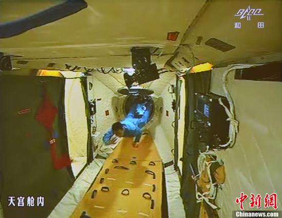 圖為在張曉光的協(xié)助下,聶海勝順利開(kāi)啟并進(jìn)入天宮一號(hào)艙門(資料圖)。中新社發(fā) 秦憲安 攝