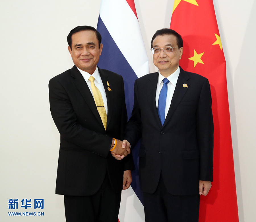李克強表示,中泰一家親深入人心,兩國關系發展勢頭很好,各領域合作持續推進。上個月,中泰鐵路項目一期工程動工,標志著中泰合作邁上新臺階。希望雙方再接再厲,推動項目順利實施,并帶動中泰其他領域合作向前邁進。中方愿加強“一帶一路”倡議同泰國“東部經濟走廊”等發展戰略對接,提升中泰貿易便利化水平,加強經貿、旅游、科技等領域合作,更好實現互利共贏。