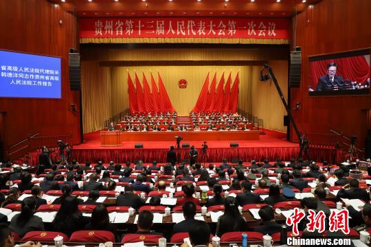 1月28日,貴州省十三屆人大一次會(huì)議舉行第二次全體會(huì)議。圖為貴州省高級(jí)人民法院代理院長韓德洋作貴州省高級(jí)人民法院工作報(bào)告。 瞿宏倫 攝
