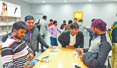 在南德里安必斯商場二樓的小米手機專賣店里場面同樣熱鬧。記者看到,購買手機的人們正排著長隊,這樣的場景讓記者著實吃驚。店長塔克解釋,今天是發(fā)薪日,人們有錢后就想購買自己中意的手機。店內的一名印度軍人告訴本報記者,他非常喜歡小米手機,物美價廉。