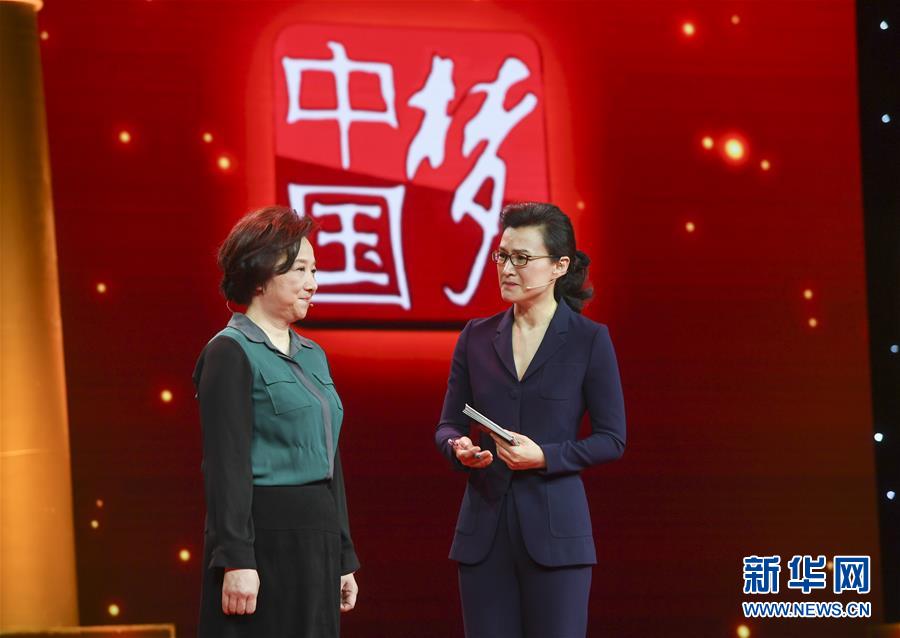 鐘揚的妻子張曉艷(左)在“時代楷模”發(fā)布儀式現(xiàn)場(3月26日攝)。新華社發(fā)