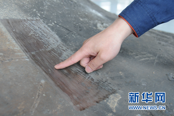 胡明華為記者展示用自動編程自適應機器人自動打磨系統打磨的鑄鍛件表面部分。新華網 聶晨靜 攝