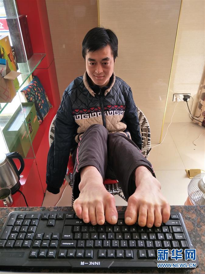 “從剛開始用一個一個腳指頭練習(xí)‘敲’鍵盤,到現(xiàn)在的十根腳趾都能用上了,證明只要努力了,就沒有做不到的事兒……”他在微信朋友圈里這樣說。