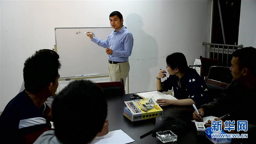 濟南翼菲自動化科技有限公司創始人張賽與同事們開會(2017年9月25日攝)。新華社發