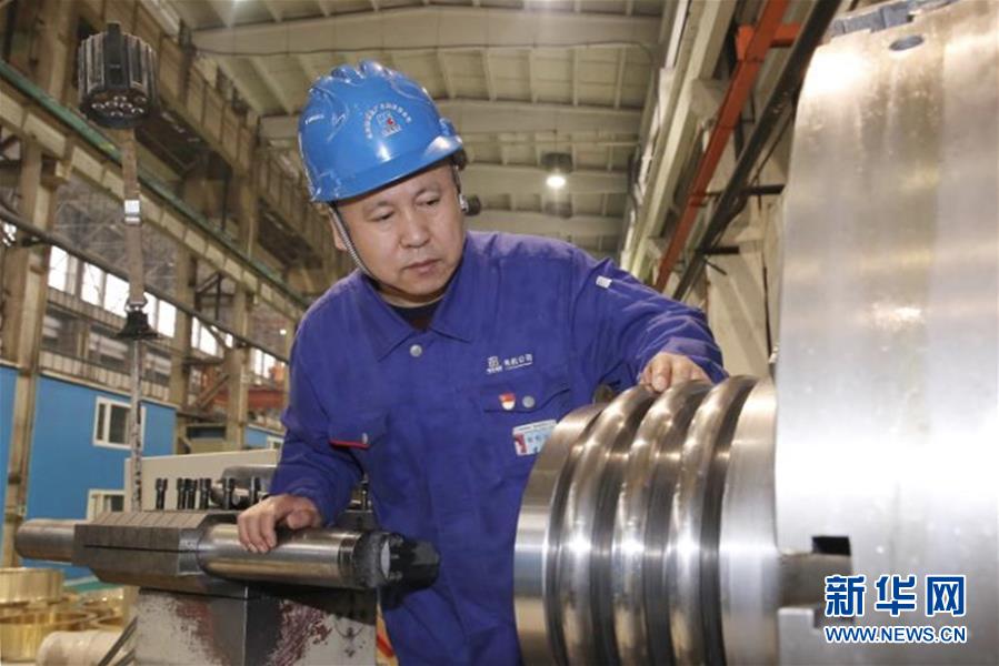 “首屆中國質量工匠”、哈爾濱電機廠有限責任公司車工裴永斌在車間工作(資料照片)。新華社發