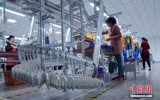 資料圖:圖為工人在勉縣一家制衣廠生產線工作。 毛建軍 攝