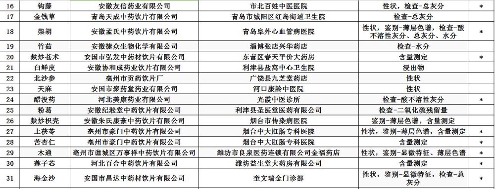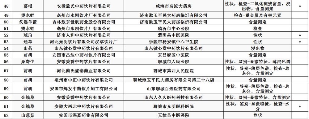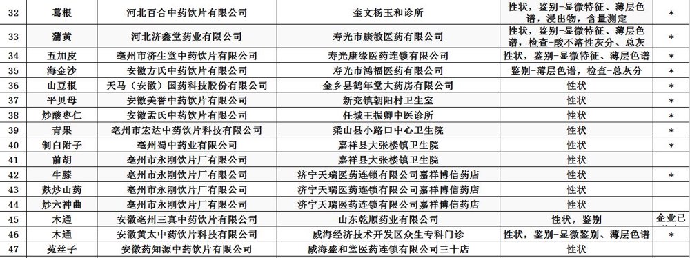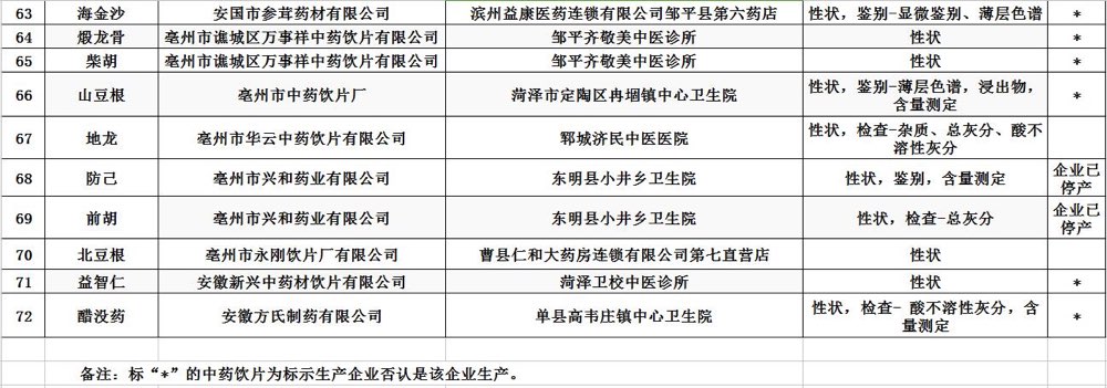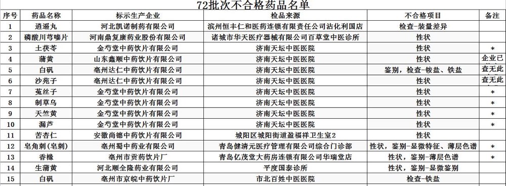 經濱州市食品藥品檢驗檢測中心等14家藥品檢驗機構檢驗,標示為河北凱諾制藥有限公司等2家企業(yè)生產的2批次藥品,標示為金芍堂中藥飲片有限公司等47家企業(yè)生產的70批次中藥飲片不合格。