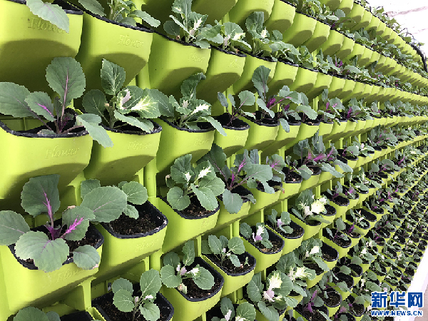 智能溫室正在培育的蔬菜。新華網記者 張宸攝
