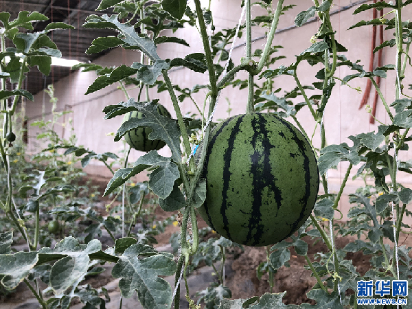 大棚里結出的西瓜。新華網 雪珍攝