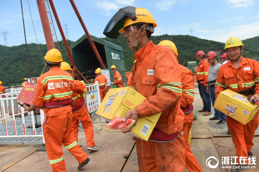 5月16日,杭州持續(xù)高溫,最高氣溫達(dá)37.5℃。在G25長(zhǎng)深高速德清至富陽(yáng)段擴(kuò)容工地,工人正在抓緊建設(shè)跨富春江大橋。承建施工項(xiàng)目的浙江交工宏途交通建設(shè)有限公司,為一線建設(shè)者送來(lái)了清涼用品和防暑藥品,慰問(wèn)高溫下作業(yè)的施工人員。(浙江在線記者 吳元峰 攝)