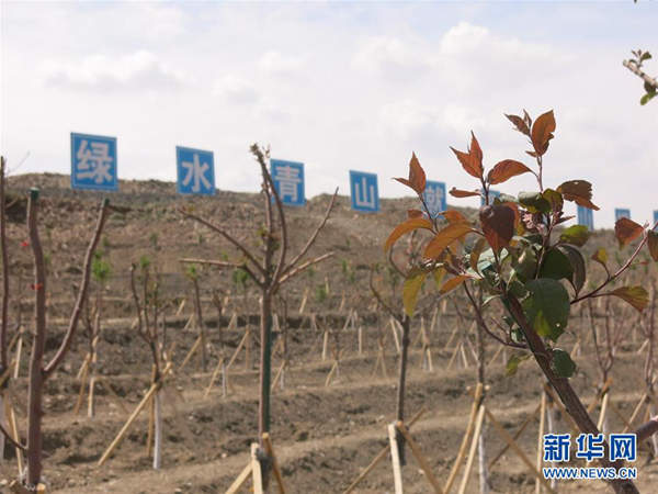 烏魯木齊植樹活動中栽種的樹苗吐露新芽(6月5日攝)。新華社記者 符曉波 攝