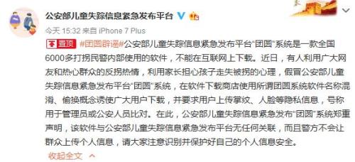 公安部兒童失蹤信息緊急發(fā)布“團(tuán)圓”系統(tǒng)鄭重聲明,該軟件與公安部兒童失蹤信息緊急發(fā)布平臺無任何關(guān)聯(lián),而且警方不會讓群眾上傳個人信息,請大家注意識別并保護(hù)好自己的個人信息安全。